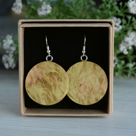 Zielone kolczyki XL wykonane zostały z barwionego drewna. Posiadają oryginalny wzór. Kolczyki są duże, a jednocześnie lekkie. Uwaga na kolor - to jest bardzo jasny odcień zieleni o niskim nasyceniu. Ze względu na wielkość kolczyki ozwalają wyróżnić się w tłumie. Dostępna jest tylko jedna para.